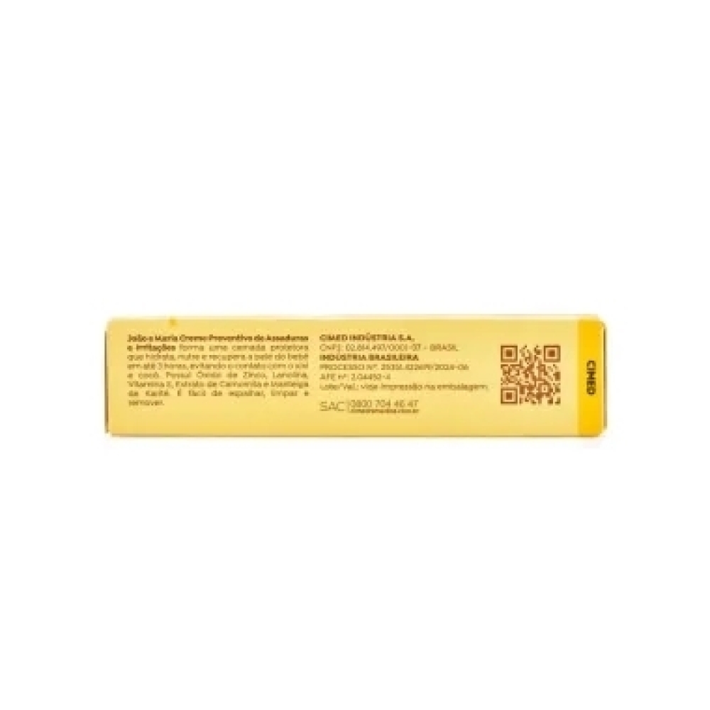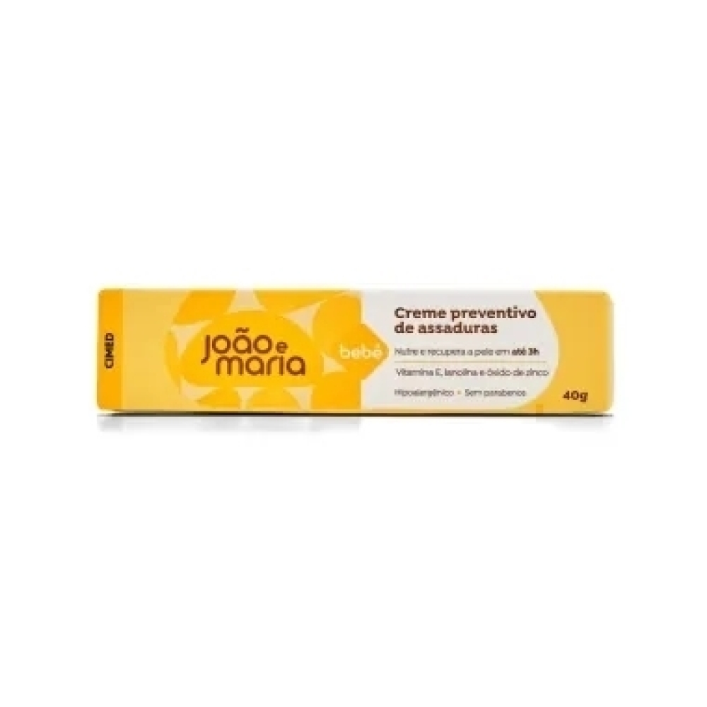 Creme Preventivo de Assaduras João e Maria – Proteção e Cuidado para a Pele do BebêO Creme Preventivo de Assaduras João e Maria foi desenvolvido para nutrir e proteger a pele delicada do bebê, prevenindo irritações e proporcionando alívio rápido. Sua fórmula hipoalergênica, enriquecida com vitamina E, lanolina e óxido de zinco, ajuda a restaurar a pele em até 3 horas.
