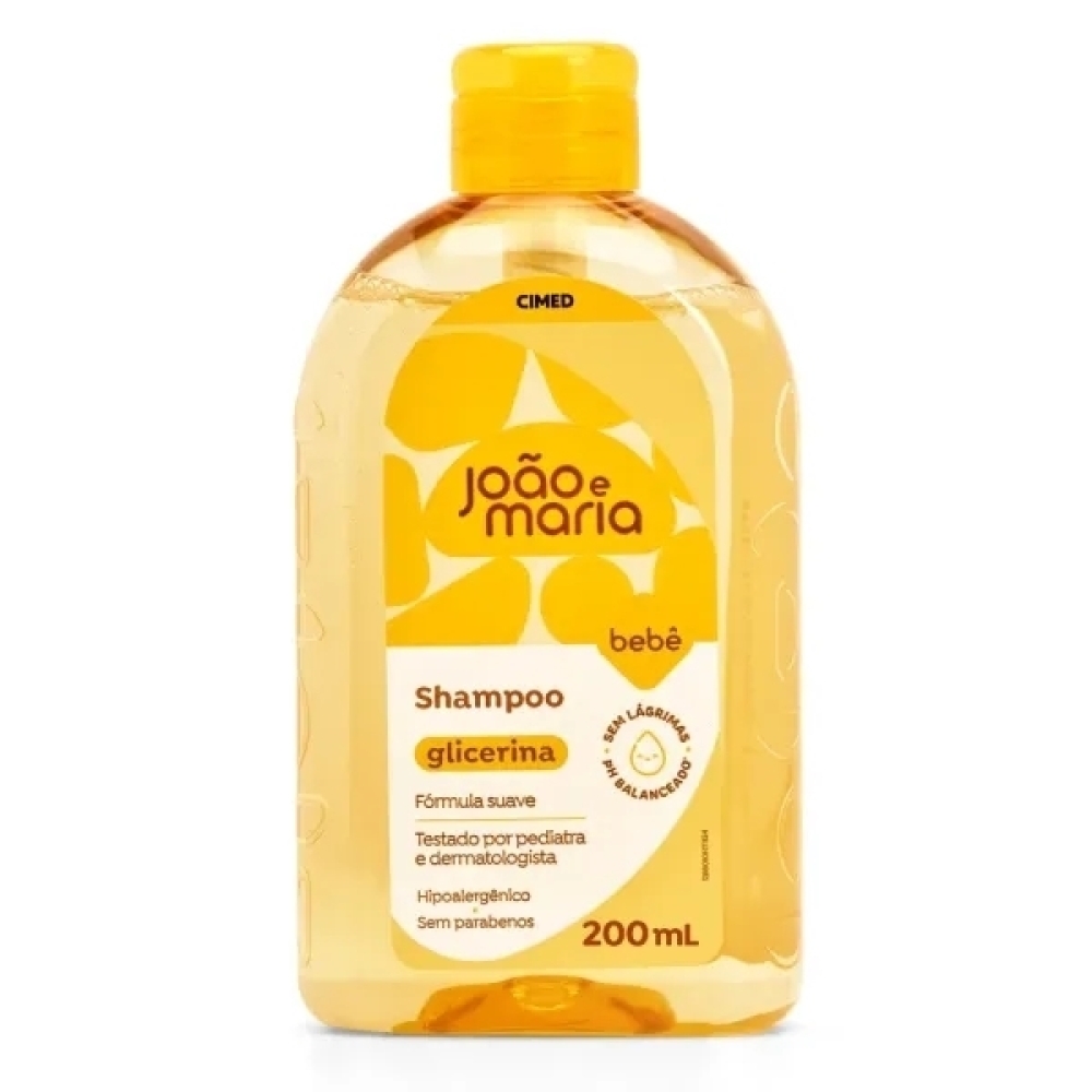 O Shampoo Glicerina João e Maria limpa suavemente a pele e o couro cabeludo do bebê. Sua fórmula é segura para os primeiros dias de vida do recém-nascido. Seu uso proporciona um banho tranquilo e sem lágrimas.