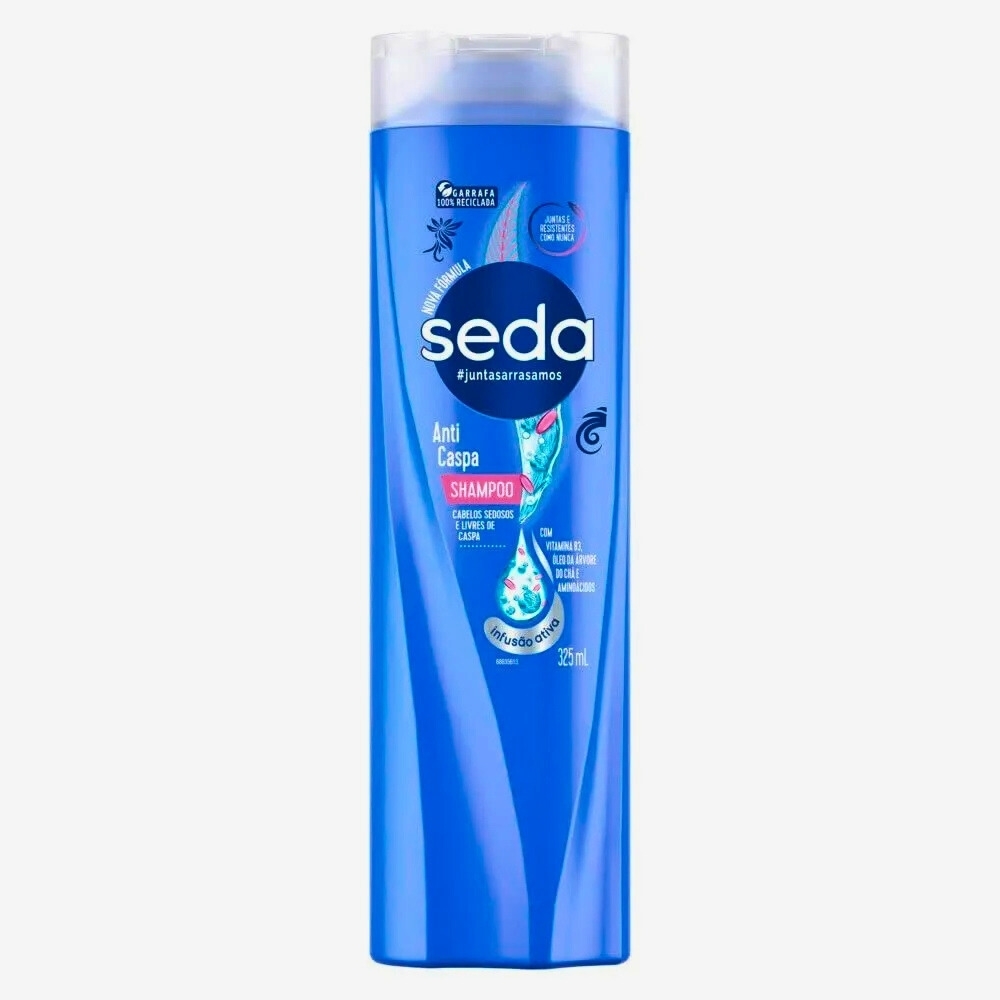 CABELOS SUAVES, VITALIZADOS E MANIPULÁVEIS EM APENAS ALGUNS PASSOS SEDA!O Shampoo Anticaspa Hidratação Diária 325ml Seda com Infusão Ativa tem uma poderosa combinação de vitamina, óleo e proteína, desenvolvido para as necessidades do seu cabelo. A fórmula contém Vitamina B3, conhecida por ajudar na saúde do couro, Óleo de Melaleuca, conhecido por nutrir o couro cabeludo, e Aminoácidos, conhecido por dar força ao cabelo. Ele é ideal para couro cabeludo com caspa e todos os tipos de cabelos e pode ser usado diariamente. Cuide dos seus cabelos com Seda!