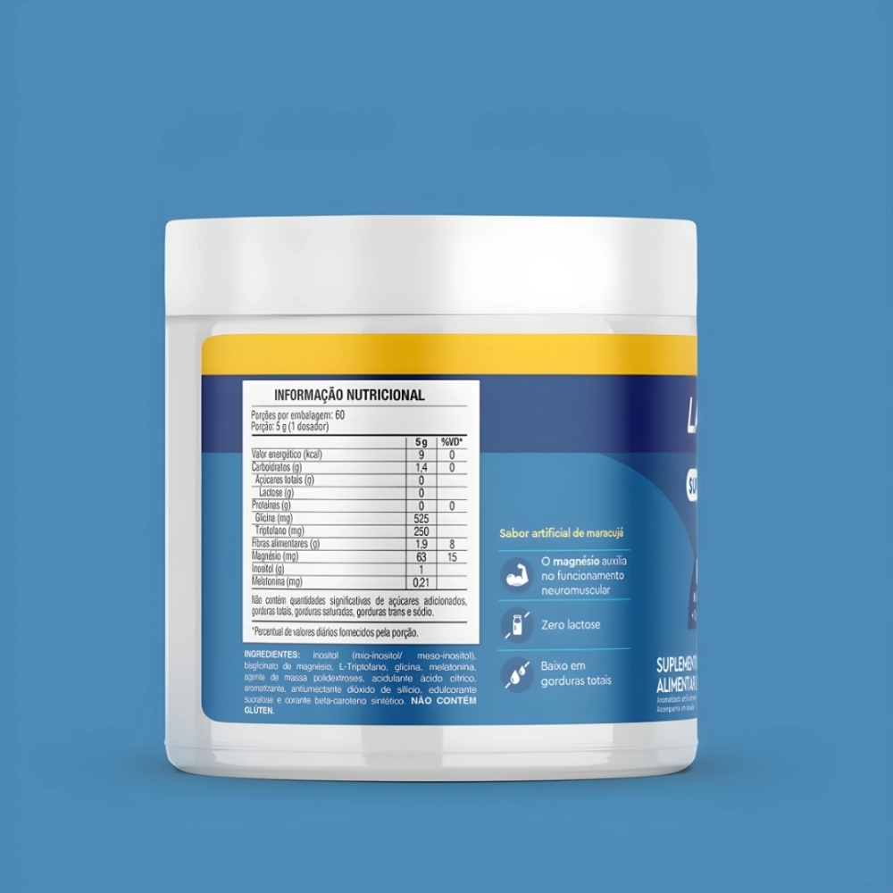Misturar 5 g (1 dosador) em 100 mL de água com auxílio de uma colher e consumir imediatamente uma vez por dia, ao deitar ou conforme orientação do médico ou nutricionista. Sugestão: recomendado uso à noite. Uso oral ≥ 19 anos. Dica Lavitaminada: na água quente, vira quase um chá de maracujá, perfeito pra relaxar antes de dormir.